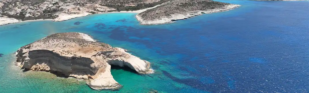 Our journey begins from the historic port of Adamas, the heart of Milos. As the Horizon Sailing team welcomes you on board, we set sail across one of the largest natural harbors in the Mediterranean.