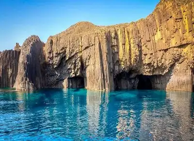 Discover the rare beauty of these volcanic islets, where vertical hexagonal basalt columns rise from the deep blue sea in a masterpiece of nature.